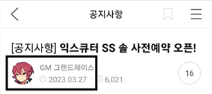 - 게시물에서 GM 그랜드체이스 프로필을 클릭해주세요!