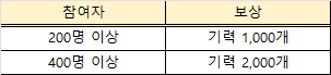 ※ 이벤트 참여 인원 보상은 이벤트 종료 후 달성한 기준으로 보상이 지급되며, 450명 이상 참여하였더라도 기력 2,000개만 지급되는 점 참고해 주세요.