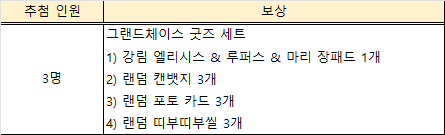2) 추첨을 통해 세 분의 영웅님께는 그랜드체이스 굿즈 셋트를 선물해드릴 예정입니다.