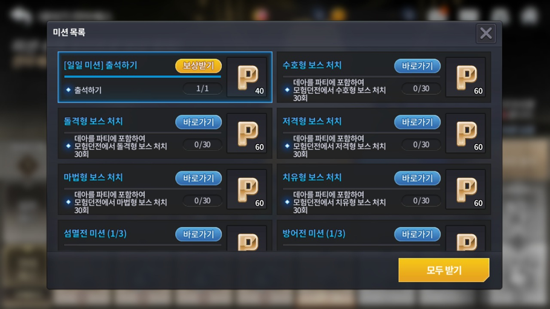 ※ 획득한 보상은 우편함 또는 인벤토리로 지급됩니다.