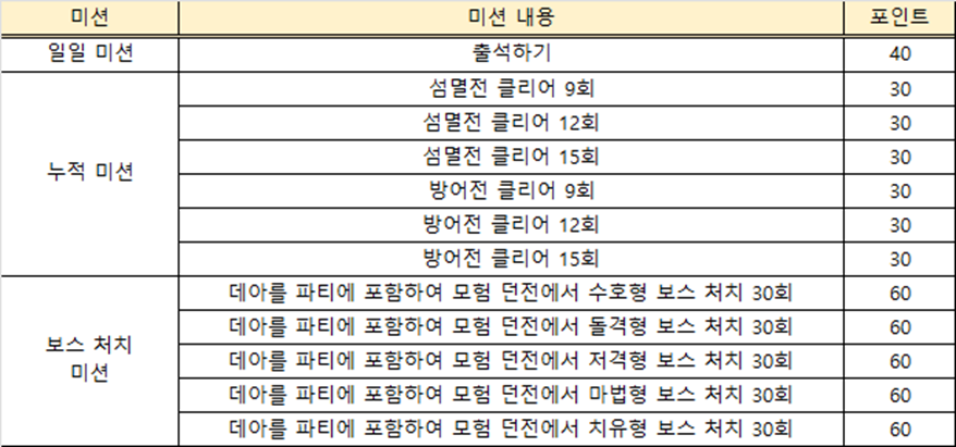 ※ 이벤트 일일 미션은 00:00 기준으로 진행 중이던 미션은 초기화됩니다.