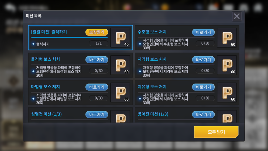 ※ 획득한 보상은 우편함 또는 인벤토리로 지급됩니다.