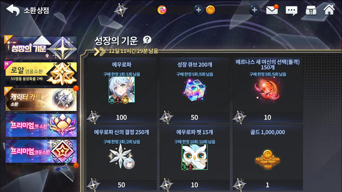 에우로파 강림 업데이트를 기념하여 성장의 기운 상점 이벤트가 진행될 예정이에요♥