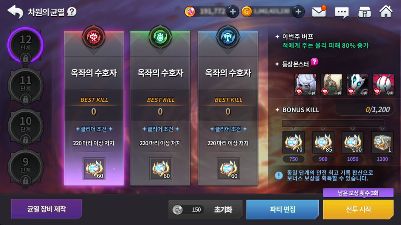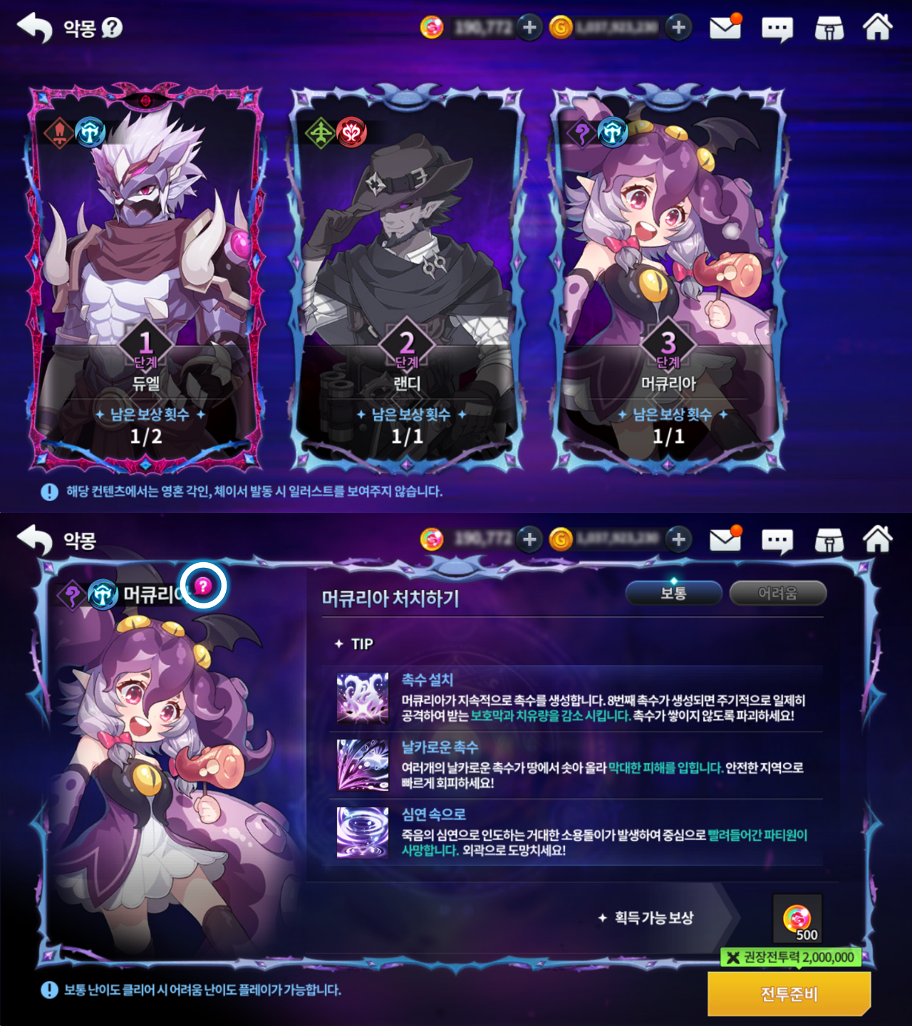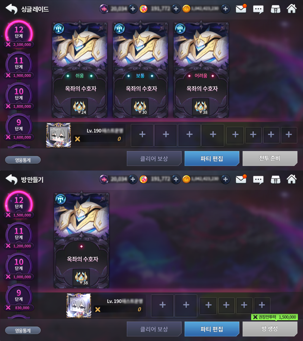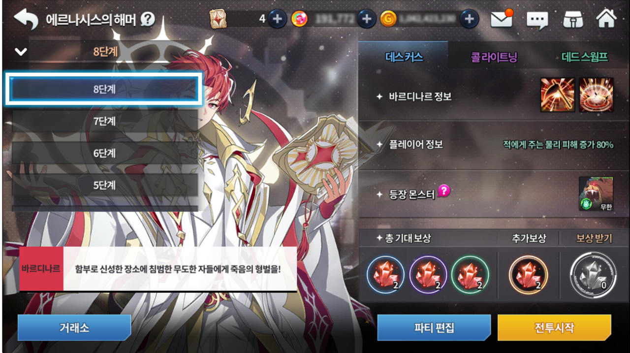 - 새롭게 추가된 8단계는 계정 최고 전투력 1,900,000 이상부터 입장할 수 있습니다.