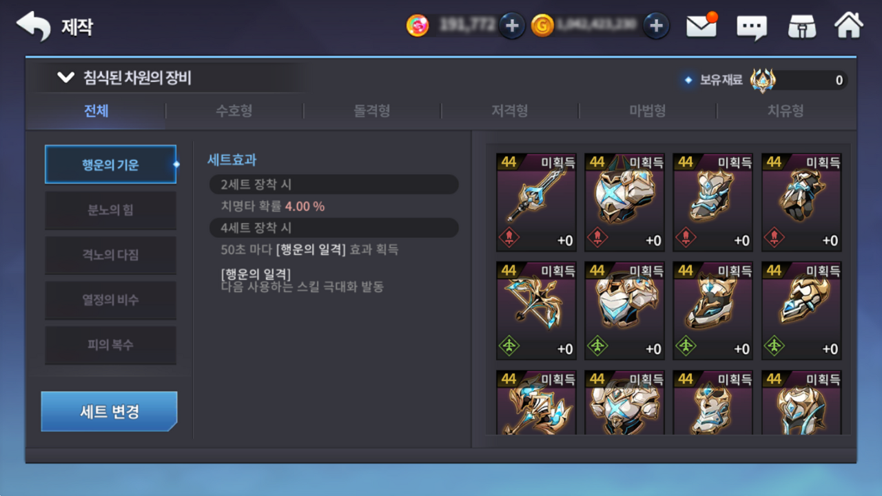 - 레이드 세트 장비 제작