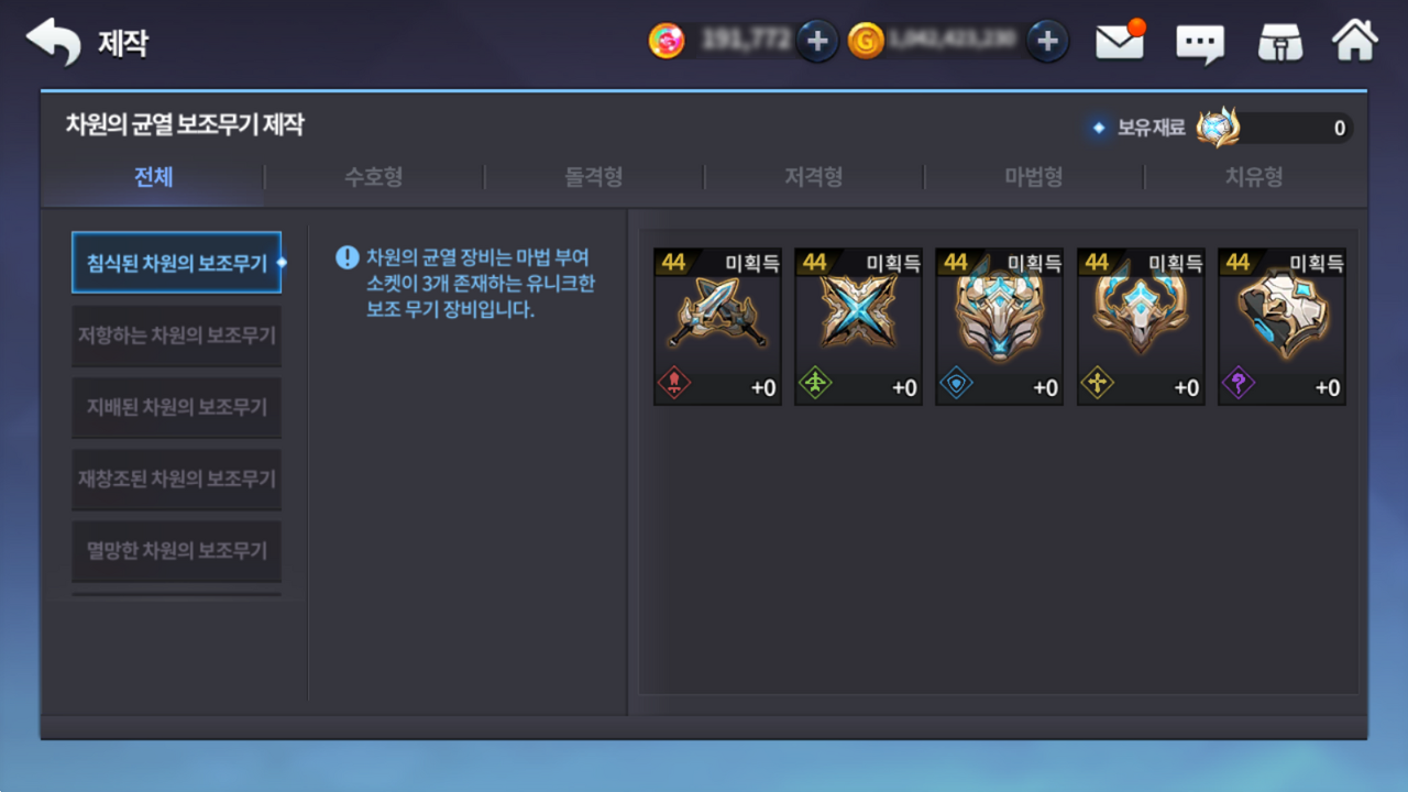 - 차원의 균열 보조무기 제작