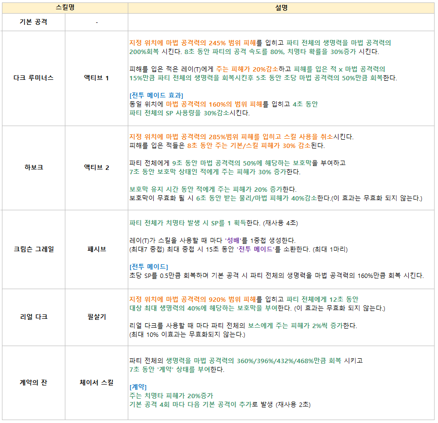 ■ 레이(T) 기본 스킬 / 필살기 / 체이서 스킬 주요 효과