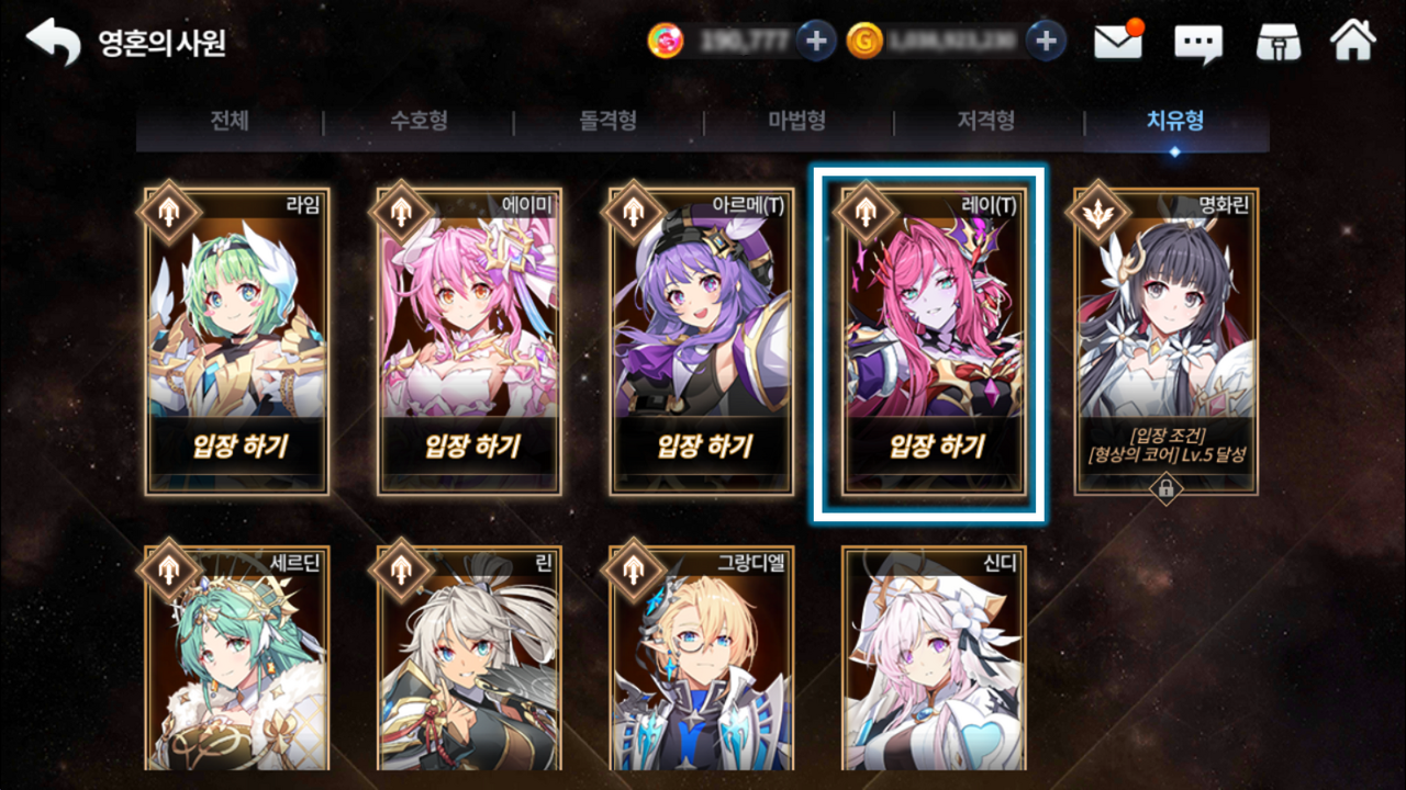 - 전직 미션 완료 및 영웅 개방 이후 '영혼의 사원 > 레이(T)' 터치 후 입장할 수 있습니다.
