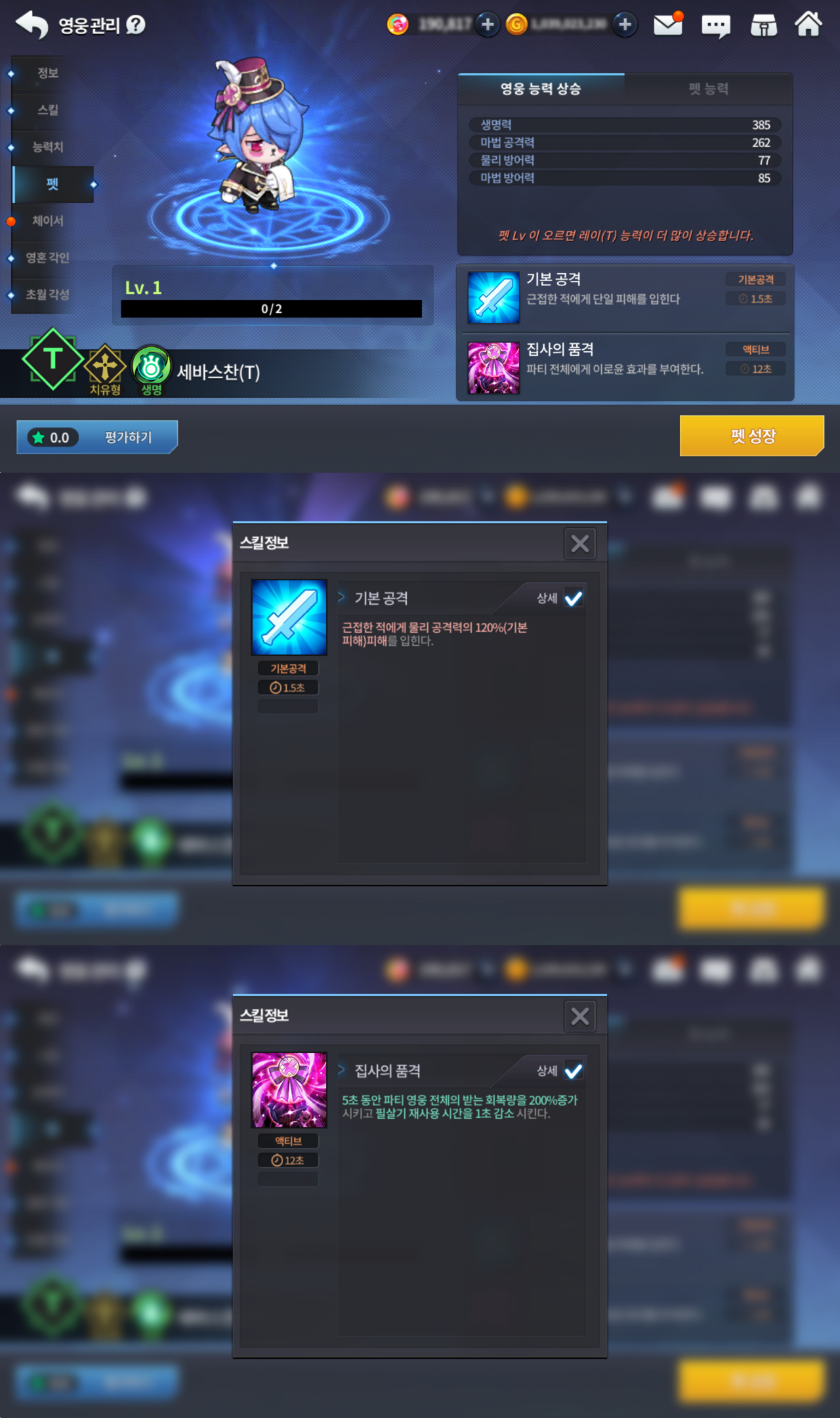 - ‘세바스찬(T) 펫'은 ‘다크 오리진 레이(T) 영웅’ 획득 시 1 Lv 상태로 획득할 수 있습니다.
