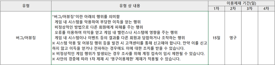 이 같은 조치는 운영정책상, 무엇보다 유저분들 간의 형평성을 고려했을 때 불가피하다고 판단하였습니다.