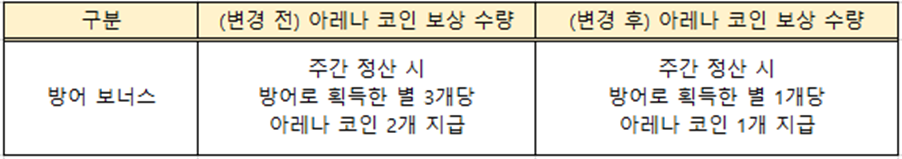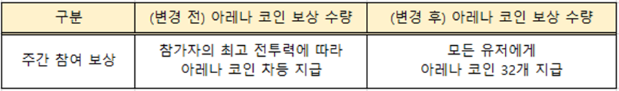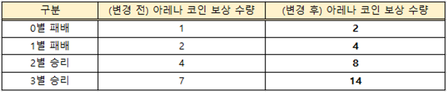 ■ 아레나 컨텐츠 보상이 상향되고, 매칭 횟수가 감소됩니다.