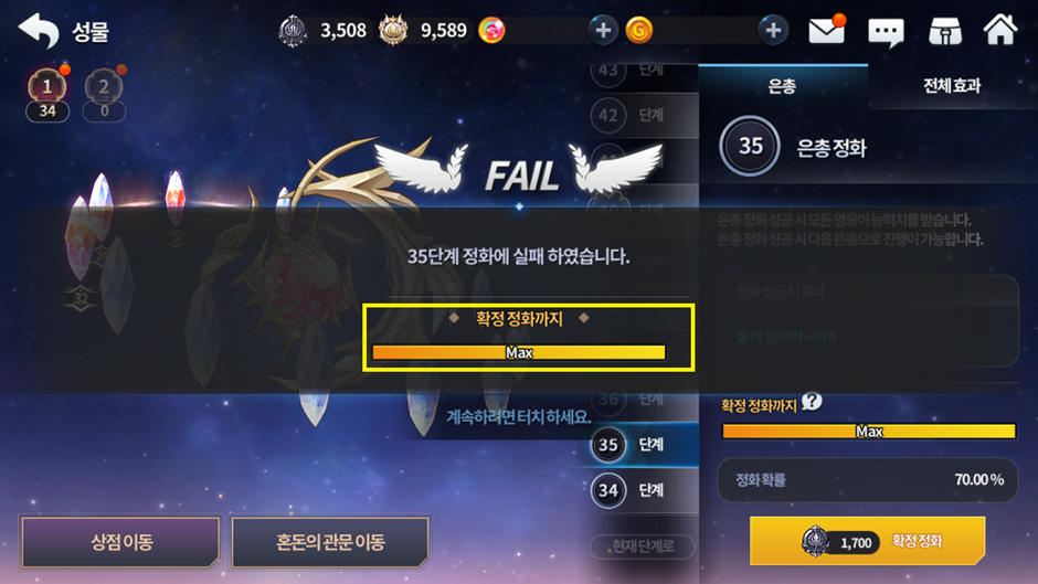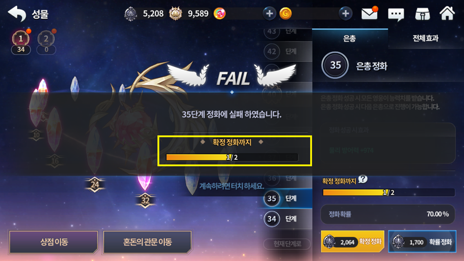 (성물 정화 실패 시 “정화 포인트” 획득)