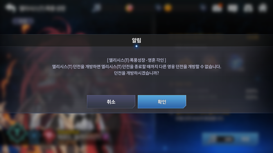 - '전직 영웅' 폭풍 성장 던전을 개방한 이후에는 해당 던전의 미션을 모두 달성할 때까지 다른 던전을 개방할 수 없습니다.