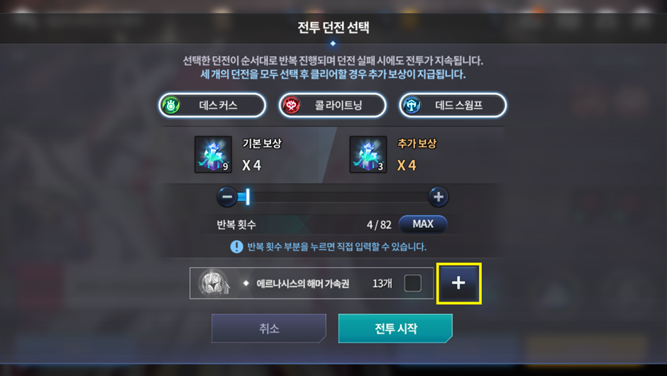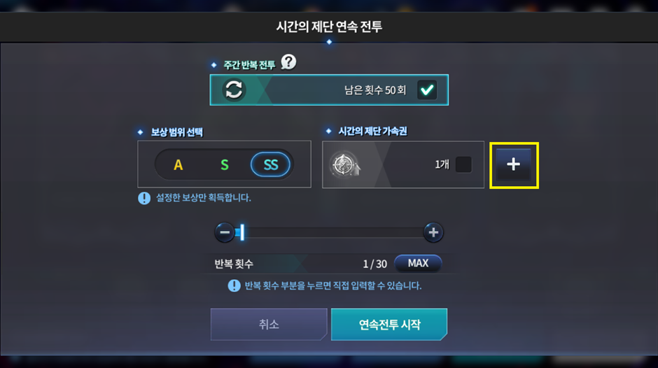 ■ 에르나시스의 해머, 시간의 제단 반복 플레이 시 가속권 상품을 편리하게 구매할 수 있도록 (입장권 상점)바로가기 버튼이 추가됩니다.
