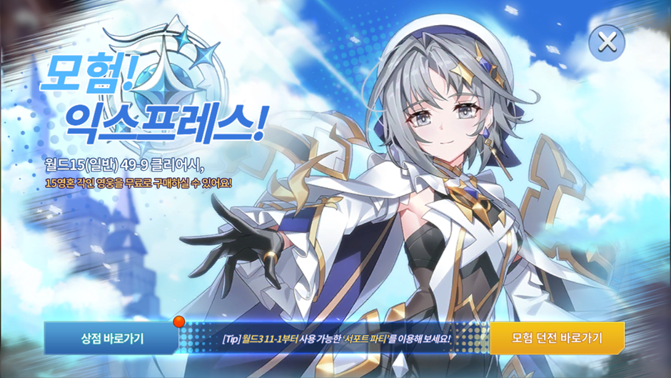 - 메인 화면의 ‘이벤트’ 리스트에 ‘모험 익스프레스’ 페이지가 상시 노출됩니다.