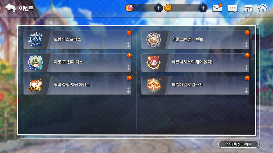 - 통합 이벤트 UI에 진입할 때 삭제 예정 아이템이 있을 경우에 게임 접속 시 1회에 한해 자동으로 노출됩니다.