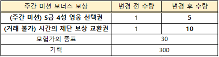 ■ 주간 미션 보너스 보상이 상향됩니다.