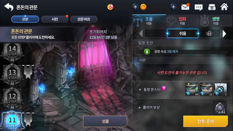 ■ 혼돈의 관문 컨텐츠가 14단계까지 확장됩니다.