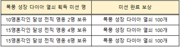 [폭풍 성장 다이아 열쇠 획득 미션 목록]