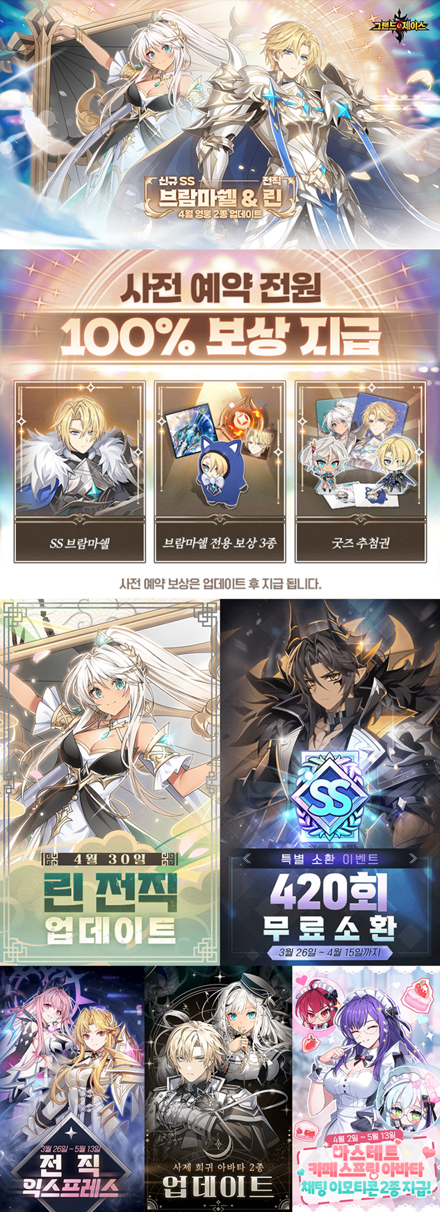 4월 영웅 2종 [브람마쉘, 린(T)] 업데이트의 사전예약이 진행됩니다.