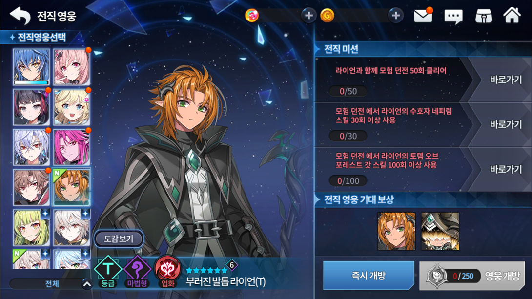 - 전직 미션 완료 및 영웅 개방 이후 '영혼의 사원 > 라이언(T)' 터치 후 입장할 수 있습니다.