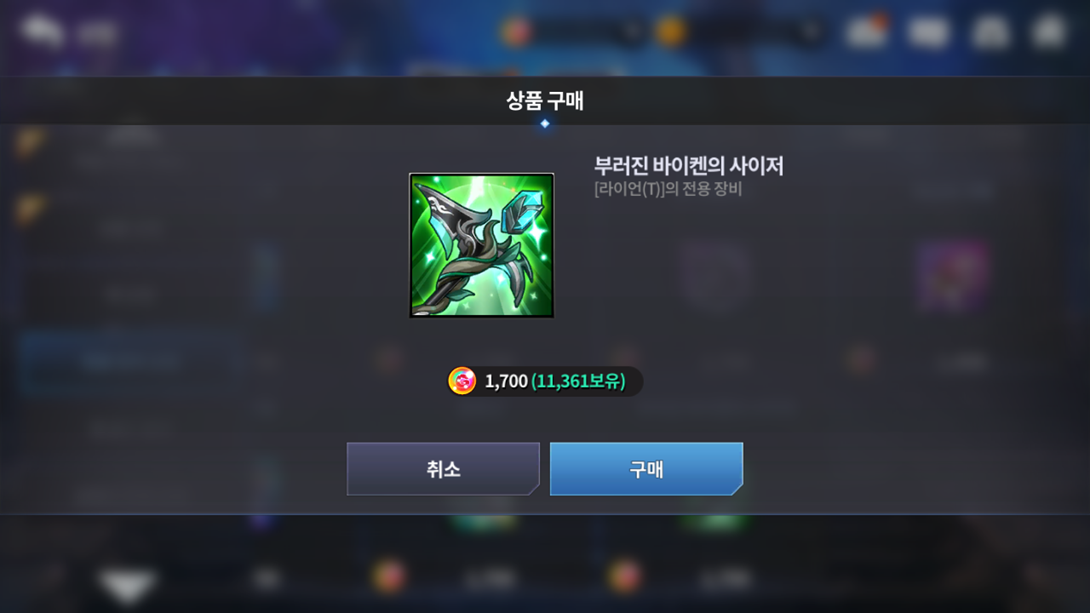 ■ 전용 장비 상점 내 라이언(T)의 전용 장비 '부러진 바이켄의 사이저'가 추가됩니다.