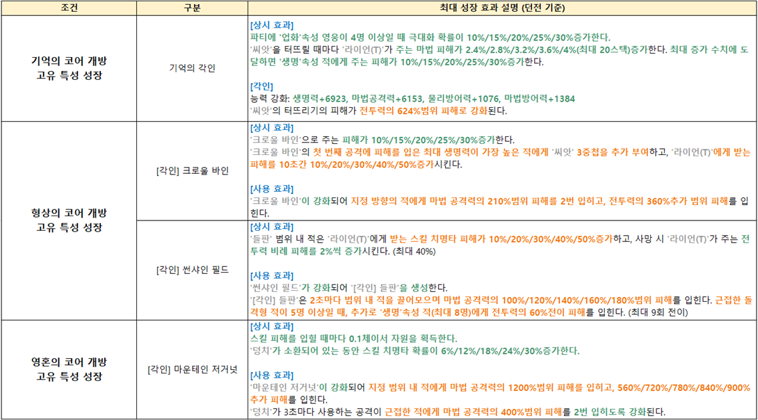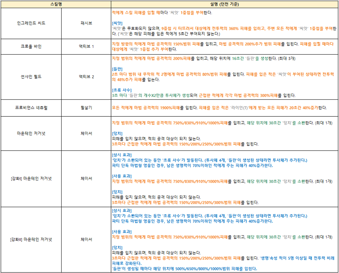 ■ 라이언(T) 기본 스킬 / 필살기 / 체이서 스킬 주요 효과