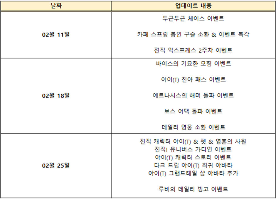 앞으로 영웅님들께서 향후 게임 업데이트 일정을 대략적으로 확인할 수 있으시도록