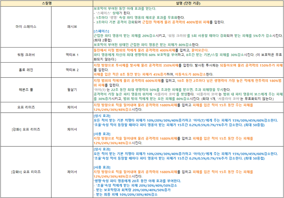 ■ 아이(T) 기본 스킬 / 필살기 / 체이서 스킬 주요 효과