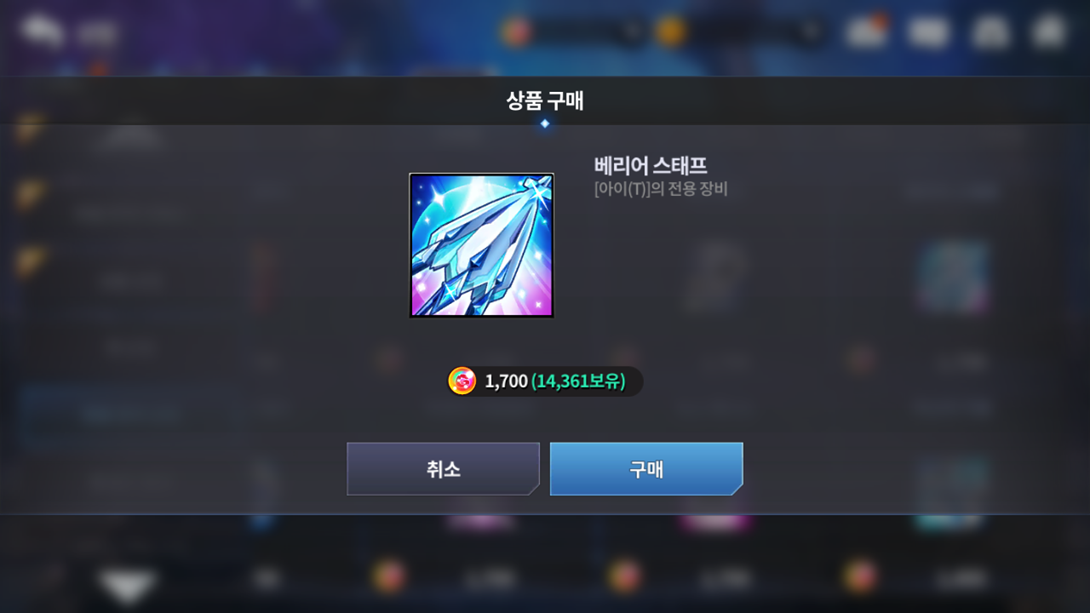 ■ 전용 장비 상점 내 아이(T)의 전용 장비 '베리어 스태프'가 추가됩니다.
