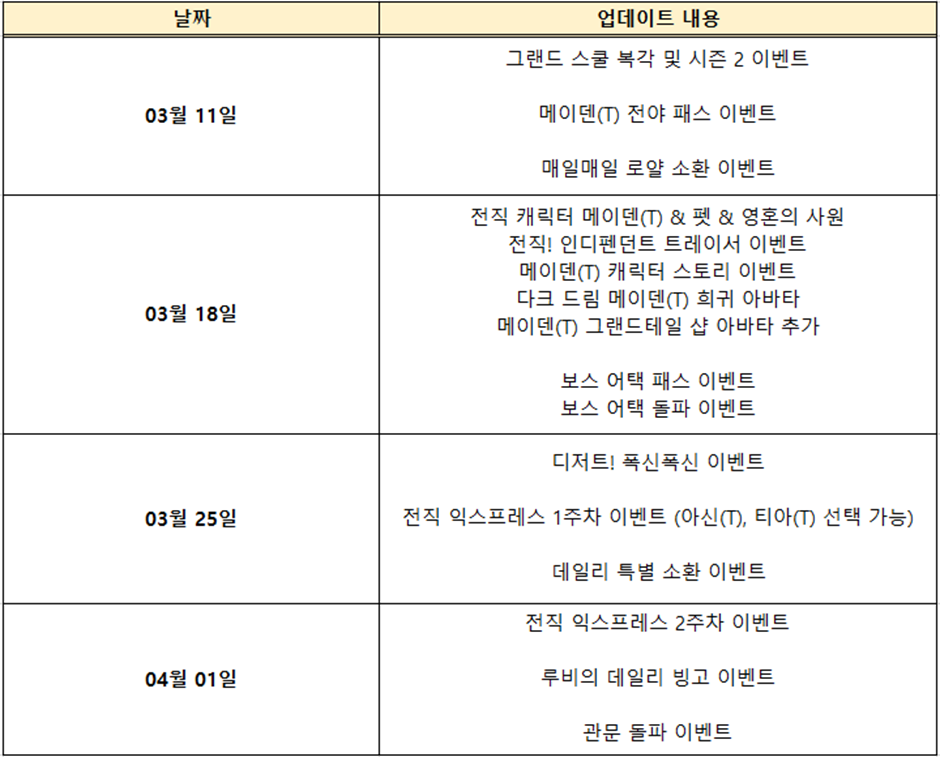 앞으로 영웅님들께서 향후 게임 업데이트 일정을 대략적으로 확인할 수 있으시도록