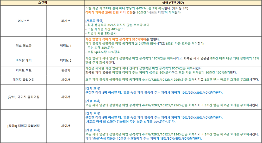 ■ 메이덴(T) 기본 스킬 / 필살기 / 체이서 스킬 주요 효과
