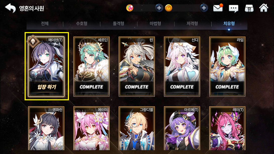 - 전직 미션 완료 및 영웅 개방 이후 '영혼의 사원 > 메이덴(T)' 터치 후 입장할 수 있습니다.
