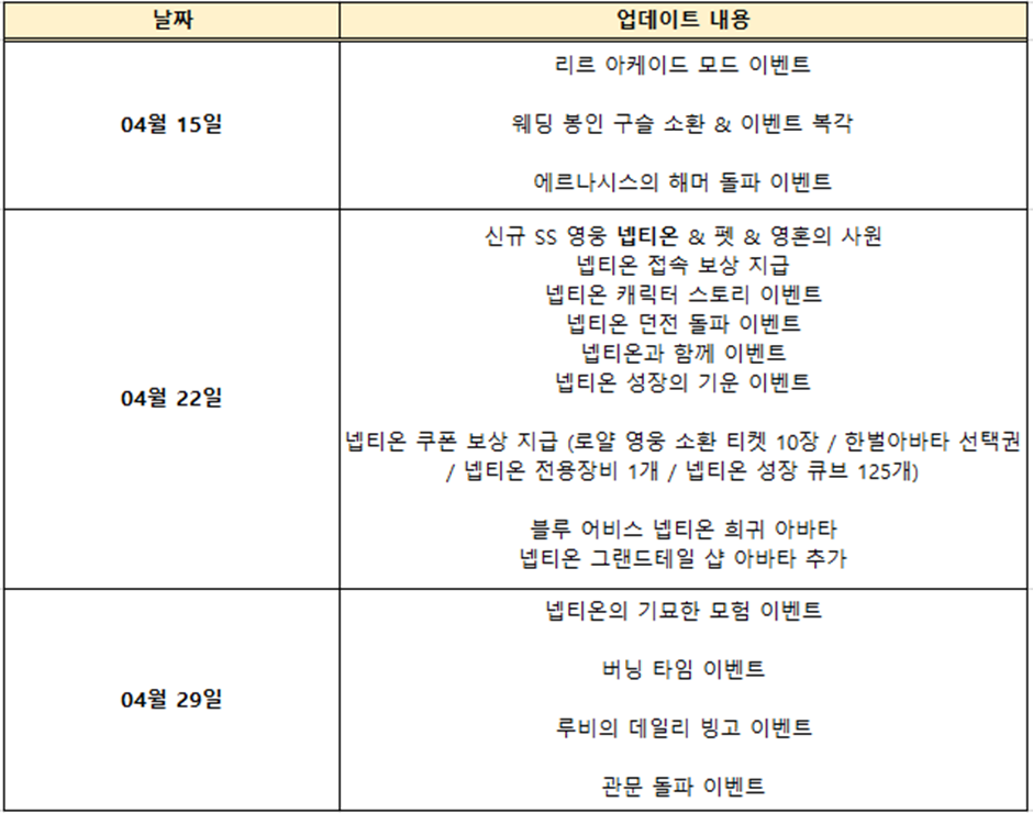 앞으로 영웅님들께서 향후 게임 업데이트 일정을 대략적으로 확인할 수 있으시도록