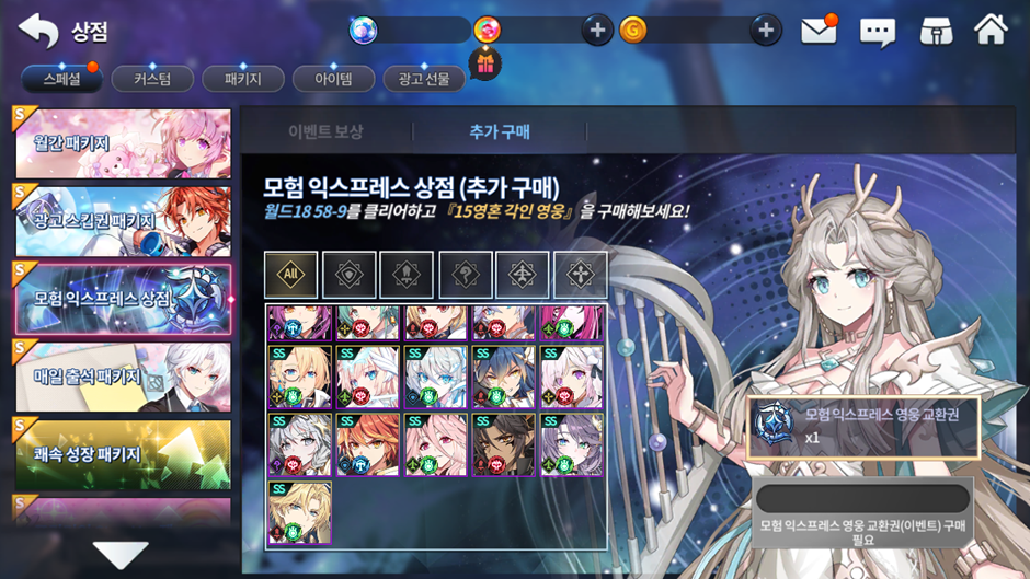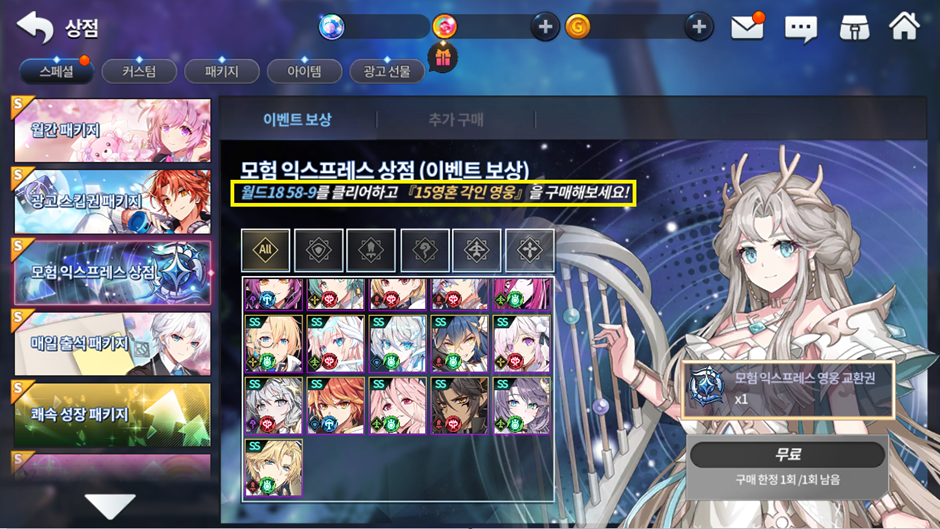 이에 따라 월드 18 업데이트 시 '모험 익스프레스 영웅 교환권(무료, 캐시)'의 구매 제한이 초기화됩니다. 아직 '모험 익스프레스 영웅 교환권(무료, 캐시)'을 구매하시지 않은 영웅님들은 2025-05-07 정기 점검 전에 구매를 완료하시기를 권장 드립니다.