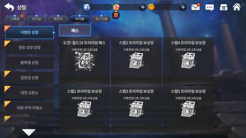 - 이벤트) 도전! 월드 18 이벤트 ← 클릭