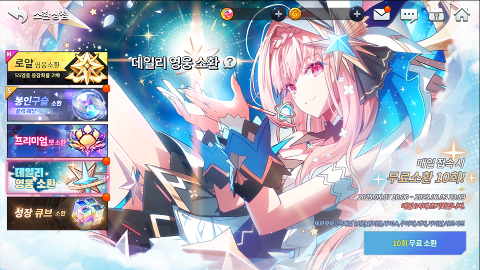 - 이벤트 기간 동안 매일 영웅 소환 10회를 진행할 수 있습니다.
