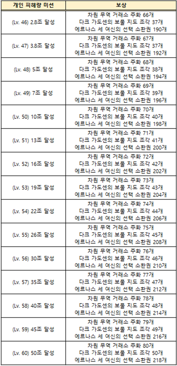 ■ 길드 보스의 개인 피해량 미션이 15단계 확장됩니다.