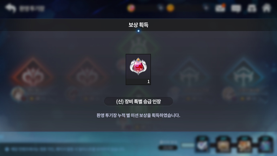 - ‘환영 투기장’의 별 미션 보상은 별 미션 최초 클리어 시 인벤토리 또는 우편함으로 자동 지급됩니다.