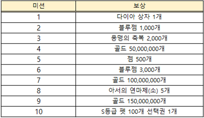 ■ 일반, 프리미엄 패스 미션을 완료 후 획득한 포인트로 성장 큐브, SS급 영웅 소환권 등 다양한 보상을 획득할 수 있는 이벤트가 진행됩니다.