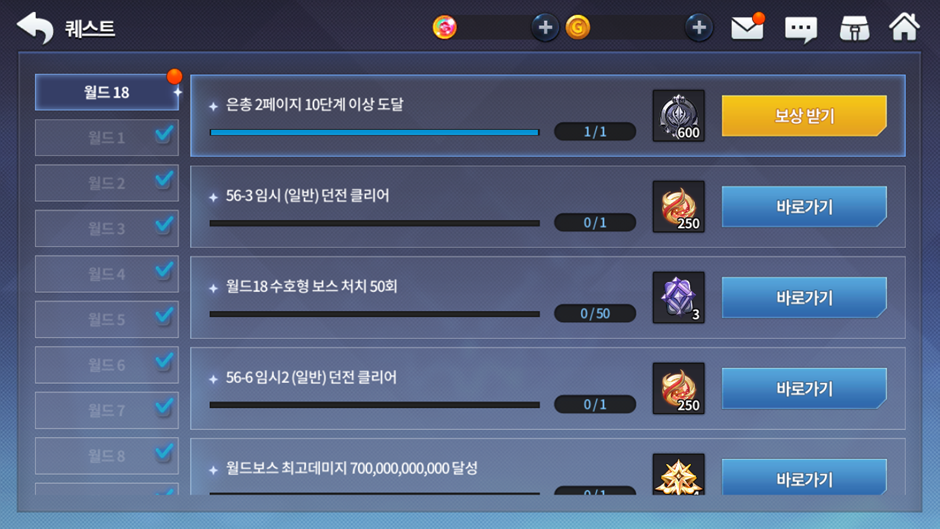 - (변경) 월드 18 마지막 던전 클리어