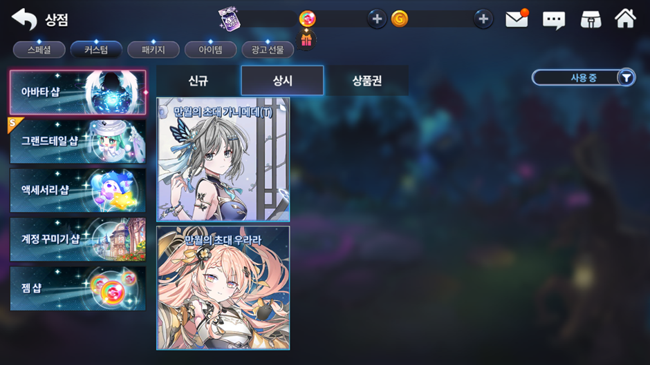 ■ 상시 판매 희귀 아바타 리스트에 ‘만월의 초대 우라라’, ‘만월의 선율 가니메데(T)’가 추가됩니다.