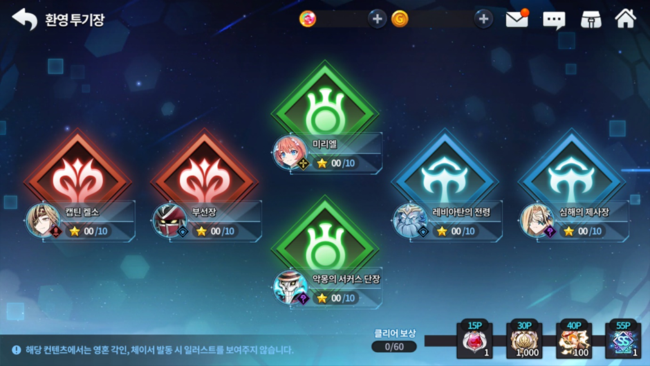 - ‘환영 투기장’의 각 던전마다 10개의 별 미션이 존재합니다.