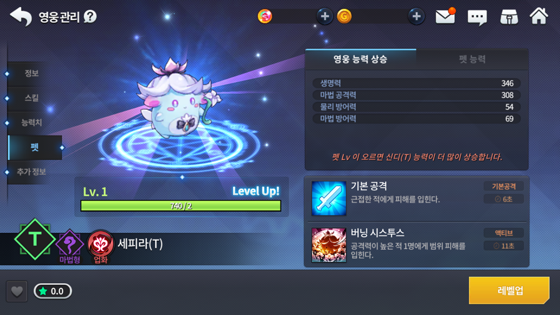 - ‘세피라(T)’ 펫은 ‘페일리오그래퍼 신디(T) 영웅’ 획득 시 1 Lv 상태로 획득할 수 있습니다.