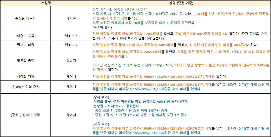 ■ 신디(T) 기본 스킬 / 필살기 / 체이서 스킬 주요 효과