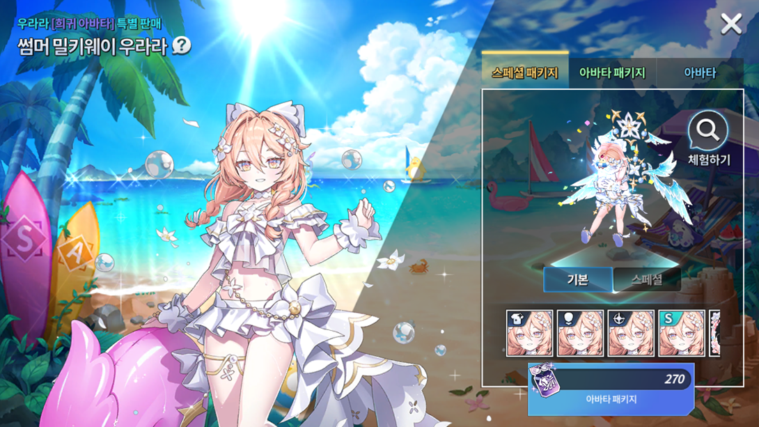 - 썸머 밀키웨이 우라라 스페셜 아바타 패키지: 기본 아바타, 일러스트, 이펙트, 테두리, 아이콘 + 스페셜 아바타
