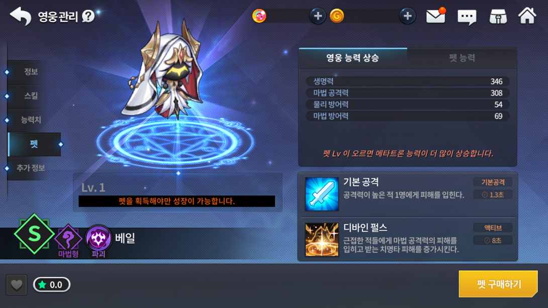 ■ SS 등급 영웅 메타트론과 귀속 관계에 있는 신규 S급 펫 ‘베일’이 추가됩니다.