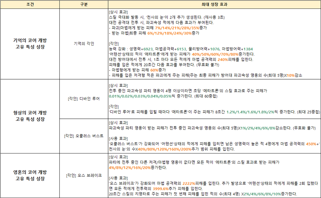 ■ 메타트론 영혼 각인 주요 효과