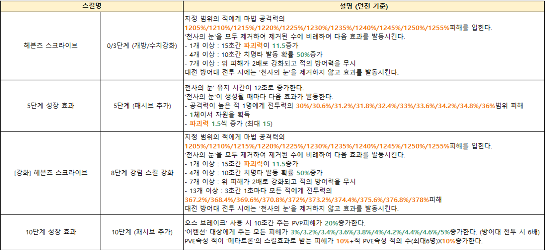 ■ 메타트론 강림 스킬 주요 효과