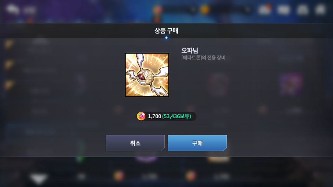 ■ 전용 장비 상점에 SS등급 '메타트론' 전용 장비인 '오파님'이 추가됩니다.